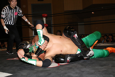 ○空牙(5分3秒、片エビ固め)サンショーマスク×