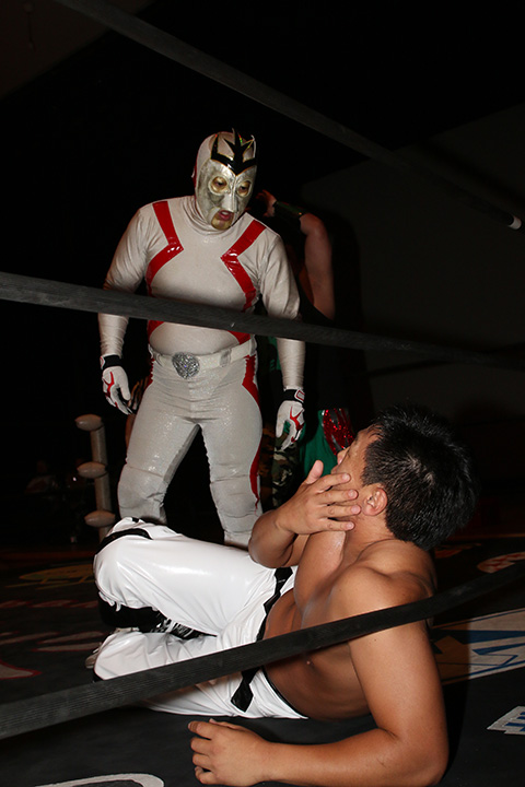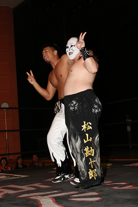 (12分41秒、片エビ固め)太陽塔仮面×&救世忍者乱丸&松山勘十郎