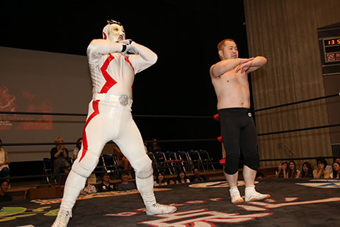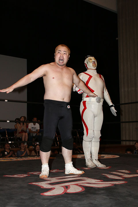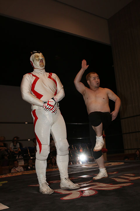○太陽塔仮面(9分38秒、リングアウト)菅沼修×