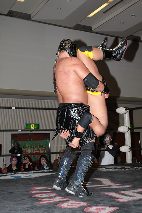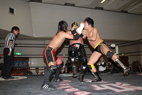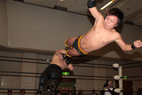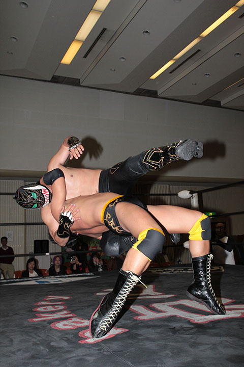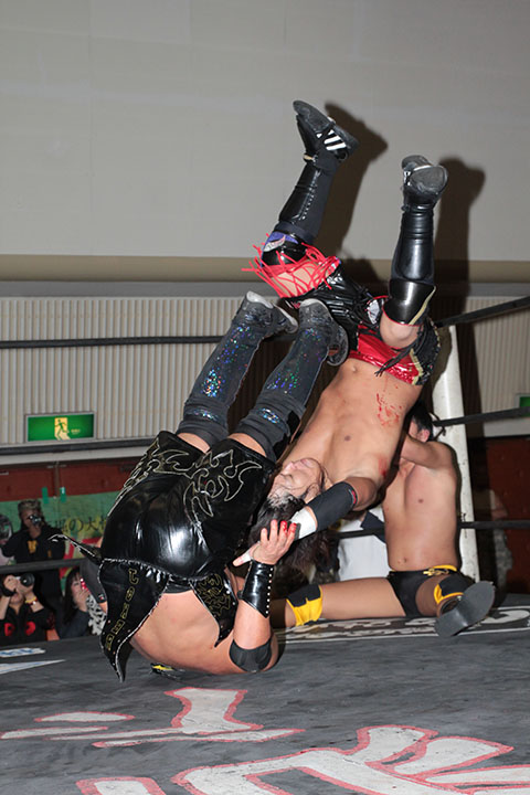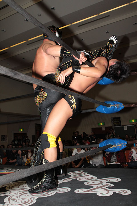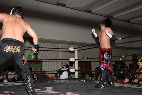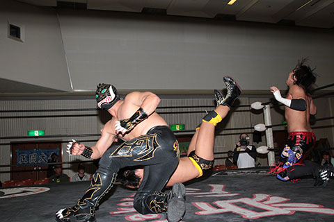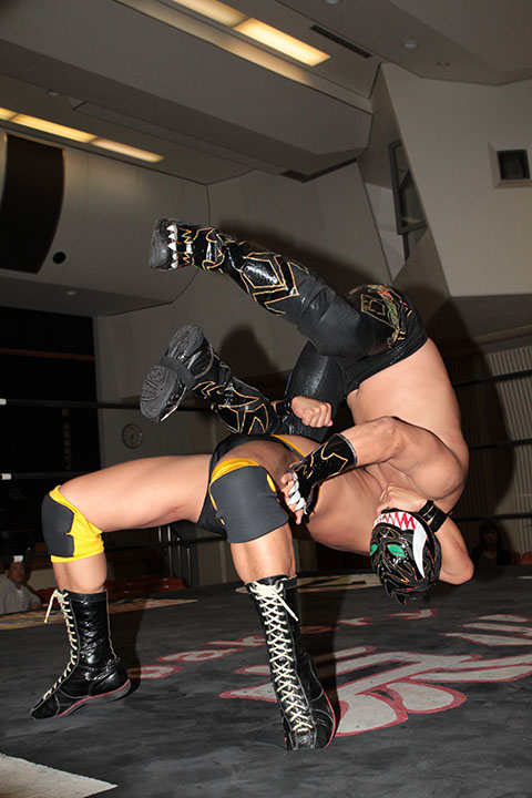 第4試合 Aブロック公式戦30分1本勝負 空牙&◯ガメラス〈2点〉(11分16秒、片エビ固め)TORU&大久保寛人×〈0点〉 ※コーヘー