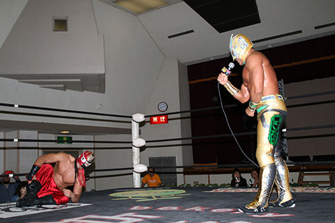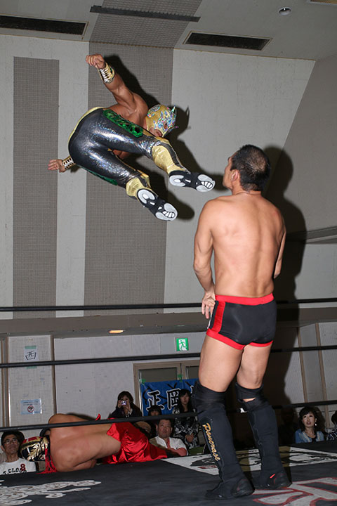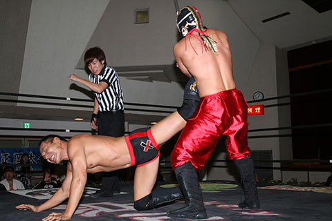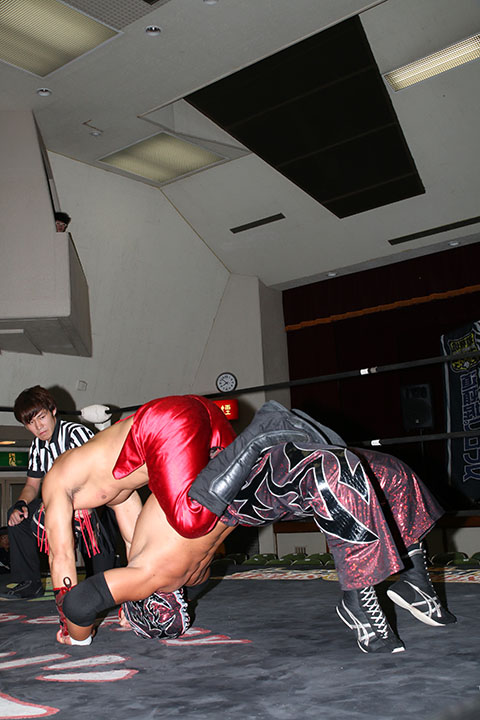 ※政宗の右足に集中攻撃で岸和田組が終始ペースを握るが最後はビリーがサムソンクラッチで丸め込み逆転勝利。