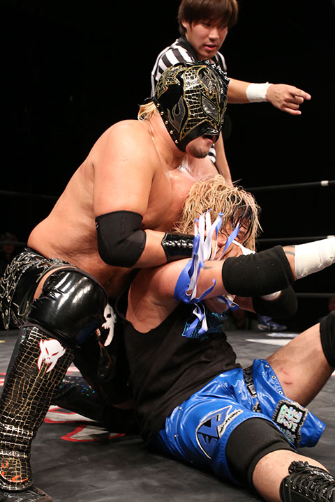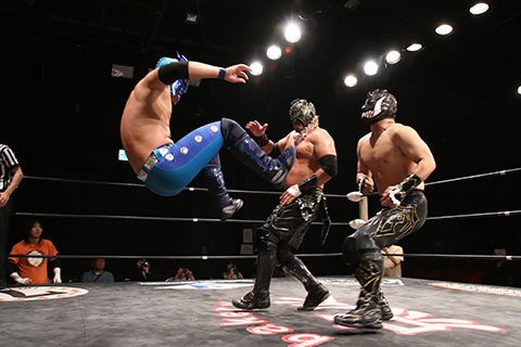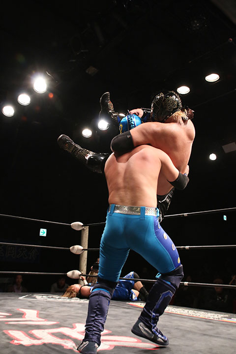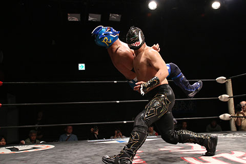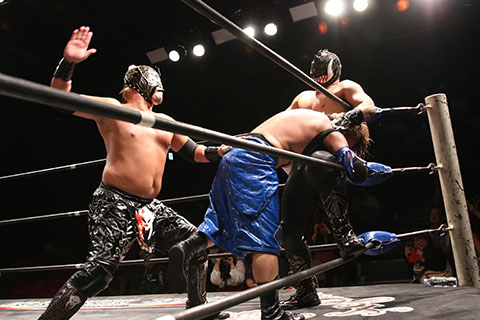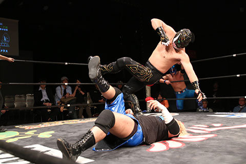 ○ラ・ピート&正岡大介〈5点〉(16分8秒 片エビ固め)空牙×&ガメラス〈4点〉