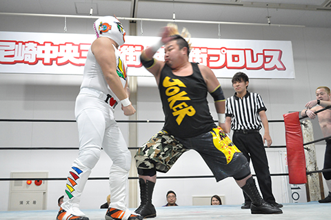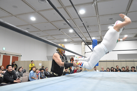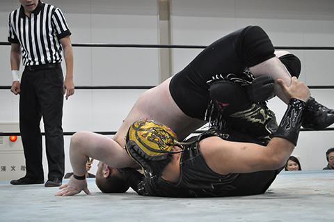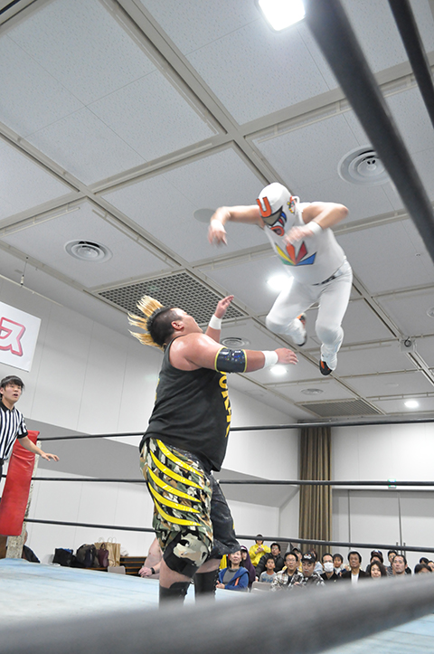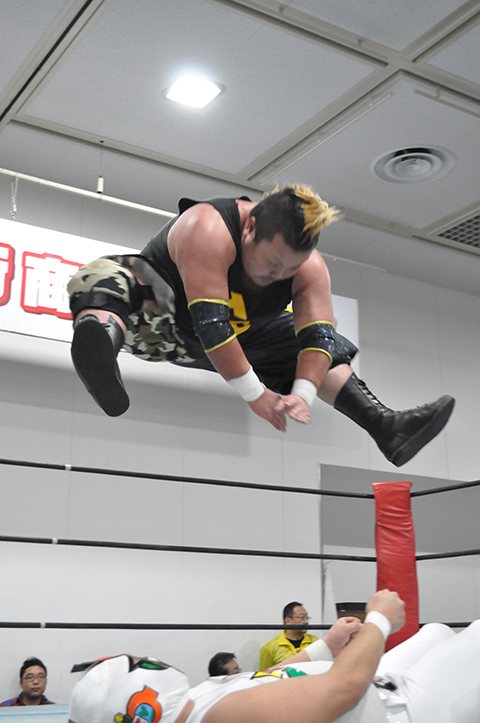 第1試合 20分1本勝負 ヲロチ&○三原一晃(12分56秒 片エビ固め)菅沼修&ミスターUO× ※ランニング・ボディープレス
