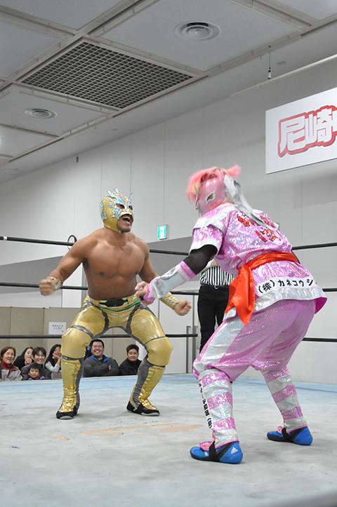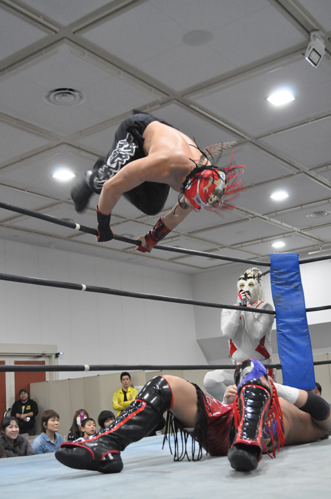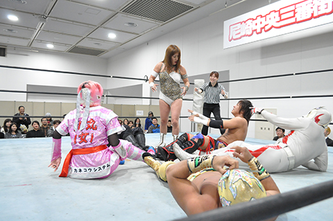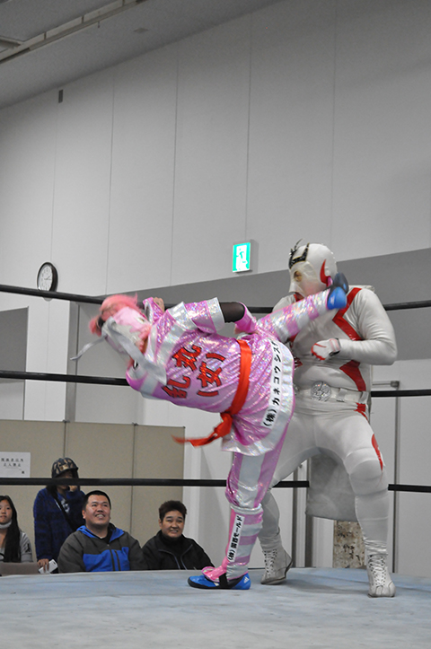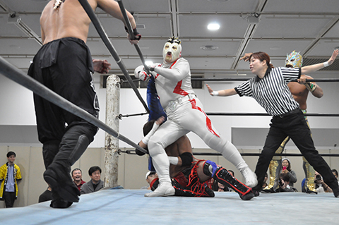 第2試合 焼肉勝っちゃん提供肉塊争奪戦 20分1本勝負 ○ジャガー横田&救世忍者乱丸&TORU (11分7秒 コブラツイスト)ビリーケン・ キッド&政宗&太陽塔仮面×