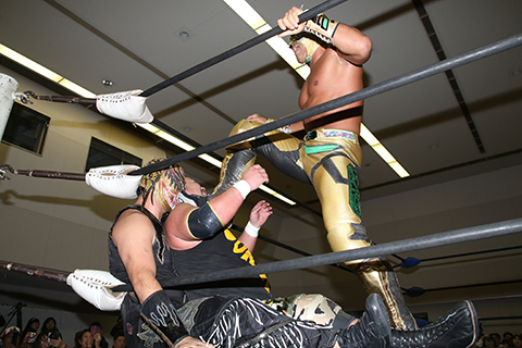 第1試合 Bブロック決勝進出決定戦 30分1本勝負 政宗&○ビリーケン・キッド(11分49秒ラ・エスパルダ)ヲロチ×&三原一晃 ※政宗&ビリーケン・キッドが決勝進出