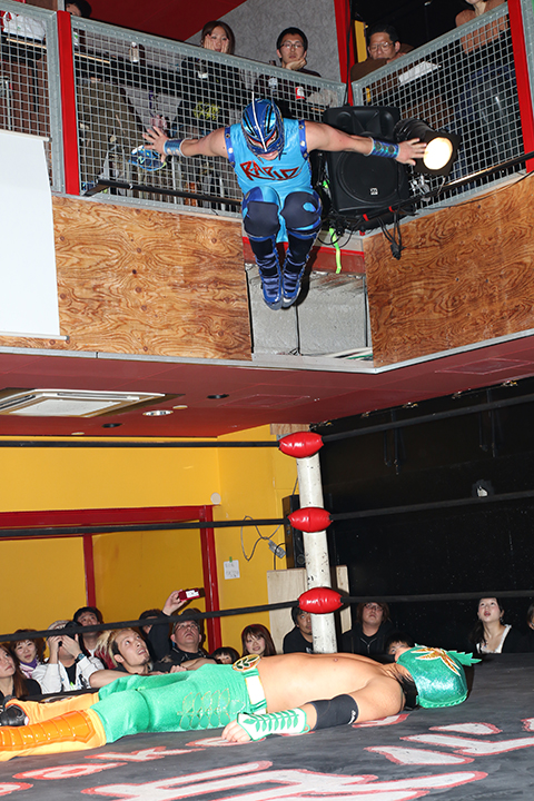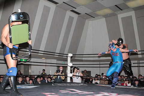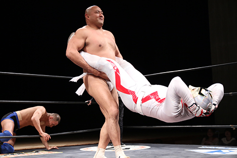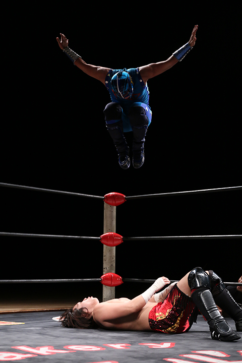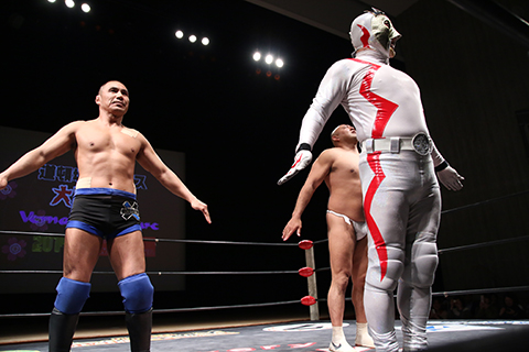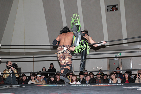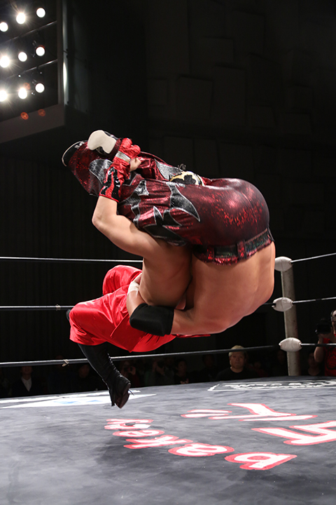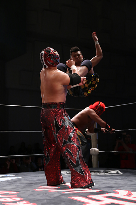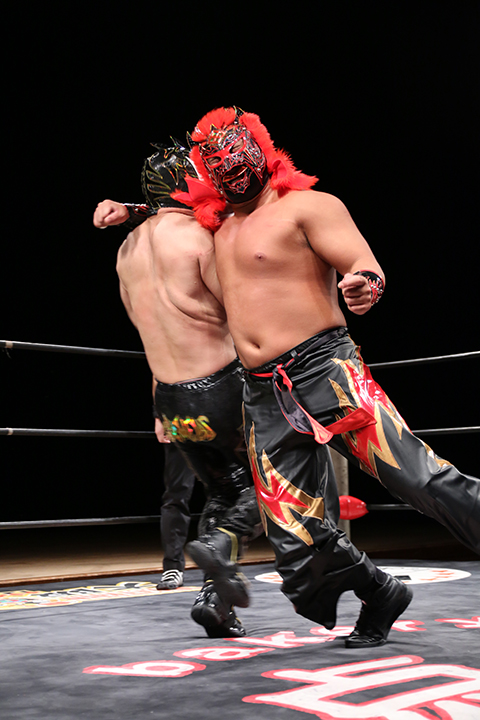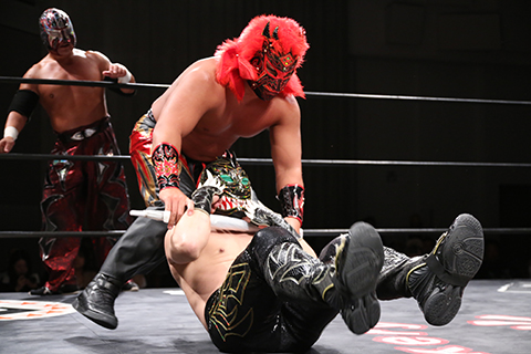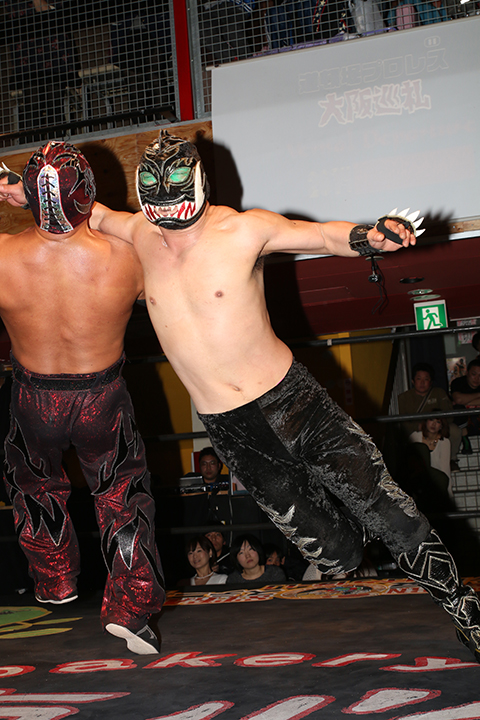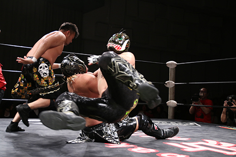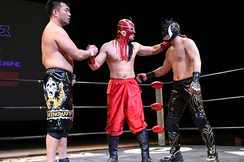 序盤は元ジョーカーの3人が連携を駆使しペースを握るがガメラスが捕まり防戦に。ガメラスの必死の反撃で奮闘するも最後は空牙のトルネードスタンプに沈む。