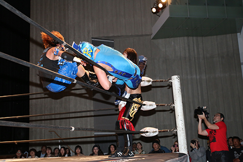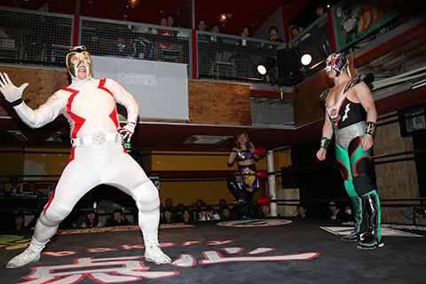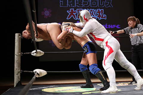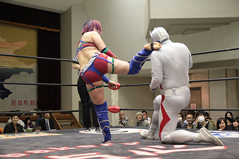 ○サンショーマスク(7分20秒、片エビ固め)ダイナ御堂 ×