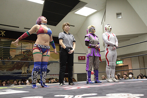 ○華名(7分01秒、エビ固め)太陽塔仮面●