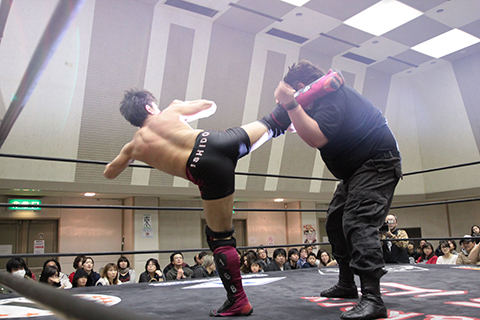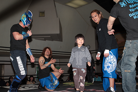 ※休憩前に1月より欠場中のYO-HEYがリングにあがり4月13日ボディメーカーコロシアム第二競技場大会にて復帰することを発表した。
