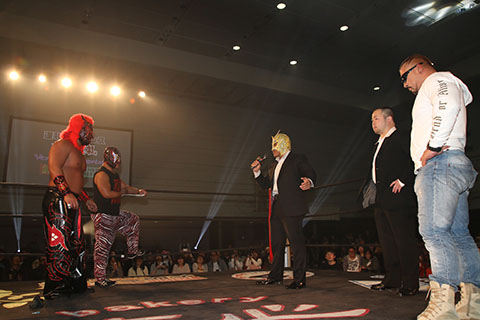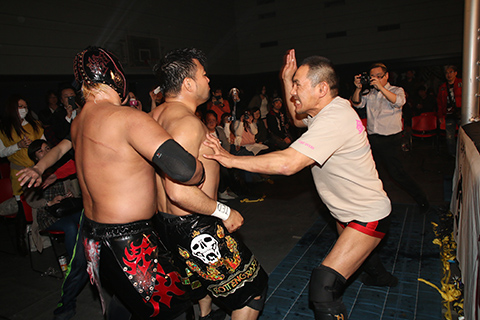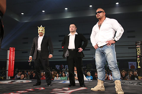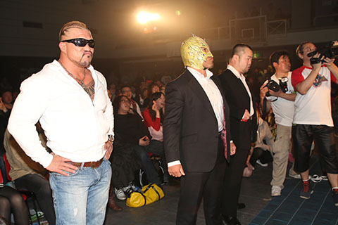 ★試合後、空牙組の曲が流れる中、ビリーケンキッド、The Bodyguard、菅沼修がリングへ登場。