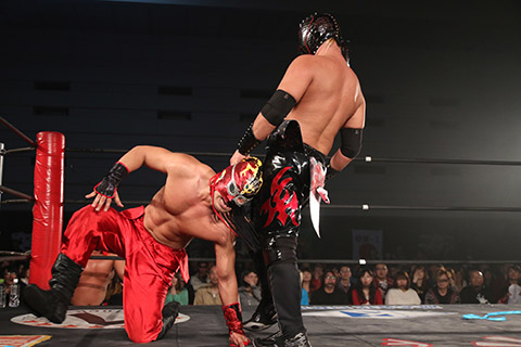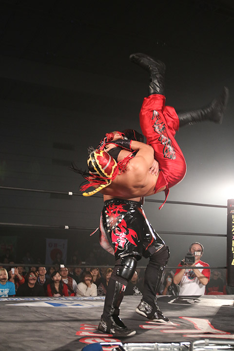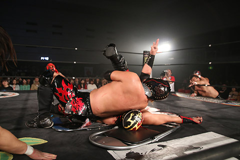 ⑴信玄(11分16秒、片エビ固め)MIYAWAKI
