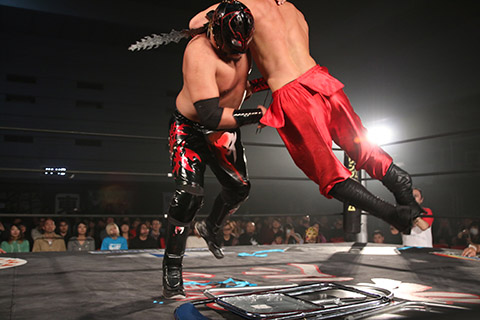空牙「どうやら俺だけやなくお前らの相手したいやつがいるようやな。てめぇらの敵は俺だけちゃうぞ。道頓堀プロレスがお前らの敵や、29日!・・・覚悟してこいや」